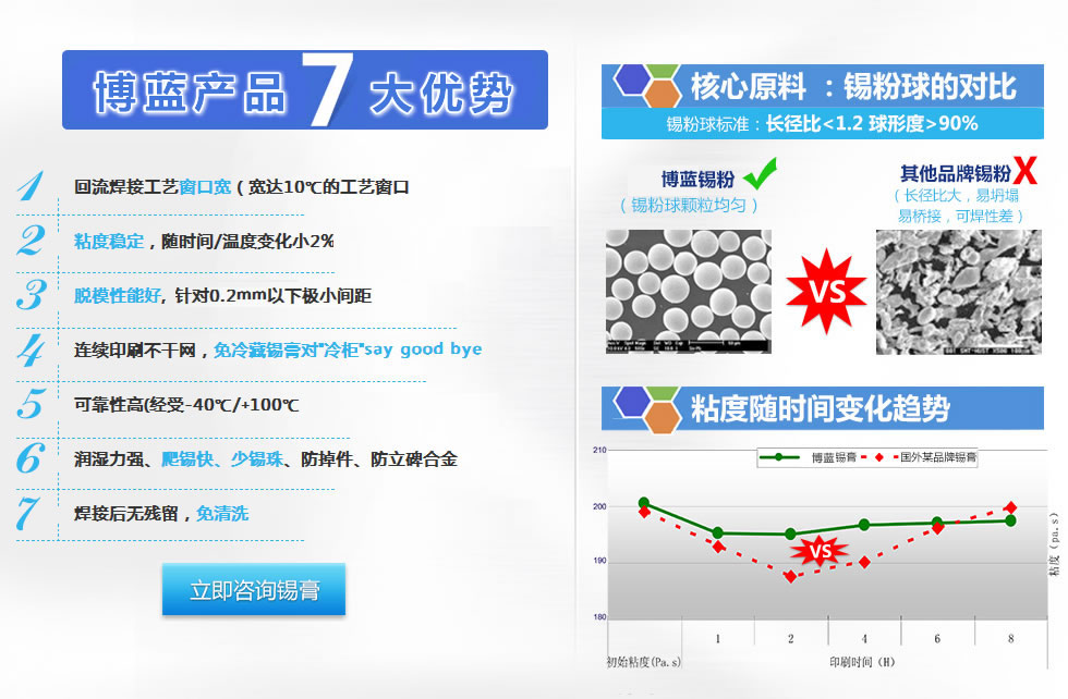 江蘇博藍錫威金屬科技有限公司是一家集研發,生產及銷售為一體新能源公司,主要經營:錫膏、焊錫片、焊錫絲、焊錫條、紅膠、日本千住確信愛法電子輔料系列產品。 采用全自動化的生產設備檢測儀器進行生產和檢驗檢測,工程技術人員團隊從事電子焊接材料、錫膏、助焊劑的生產研究已達多年,并長期得到國內焊錫材料、錫膏、助焊劑方面的老專家的授藝和指導。無論是理論基礎、 生產工藝還是管理均在同行業處于較高水平。